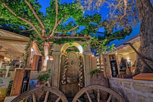 Delicious dishes from the Cretan cuisine. The ideal “meating” place. At the heart of the old town, in a beautiful garden site where local residents and foreign guests harmoniously coexist. Enjoy the local quality fresh, grilled or cooked meat, delicious dishes from the Cretan cuisine and friendly service. Affiliate your dinner with a unique homemade dessert. Guaranteed quality at a good price!