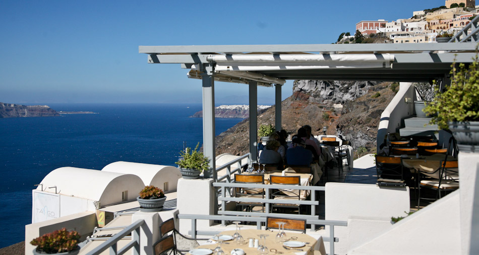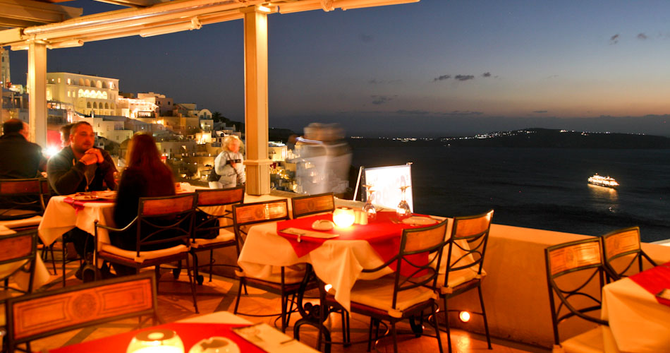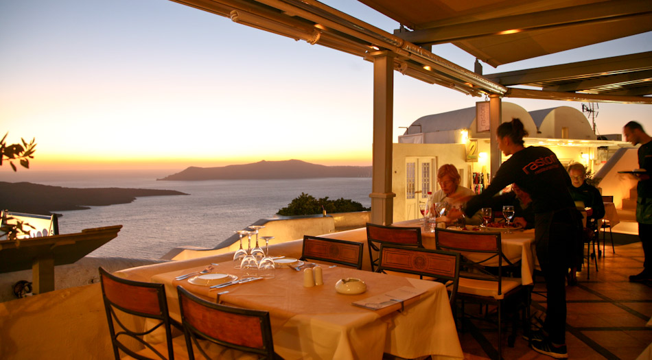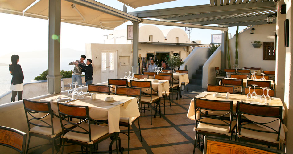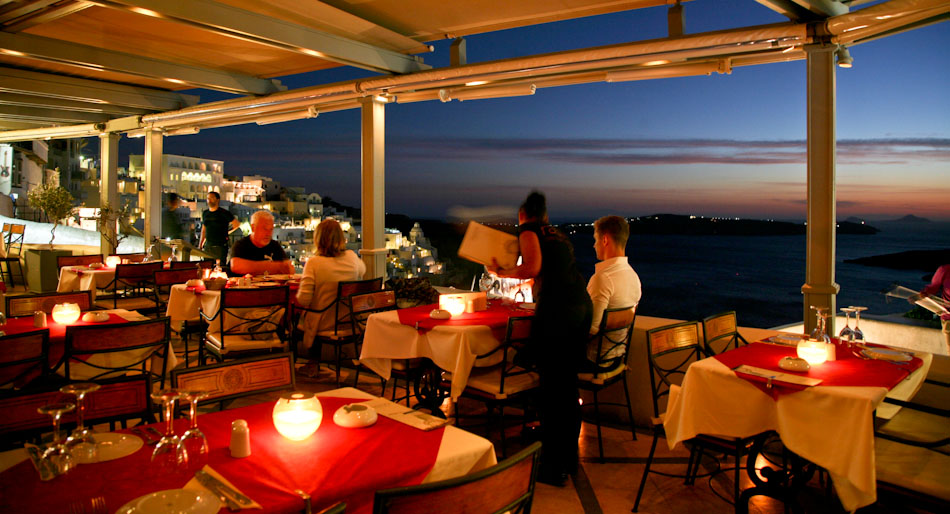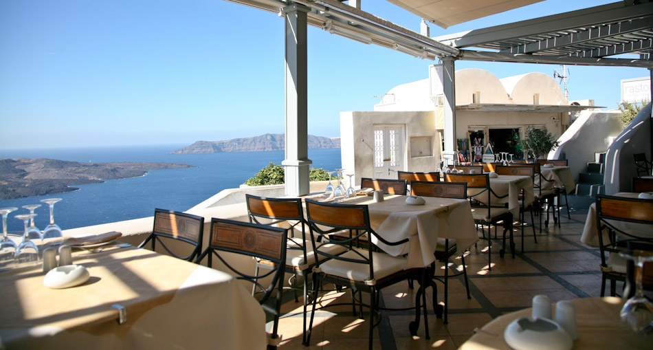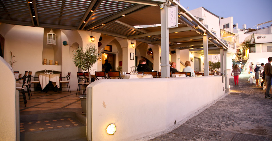 Located in the heart of Fira, the capital, Rastoni Bar Restaurant is one of Santorini restaurants which sits on the right-hand side of the Caldera on the way to the old port. Rastoni's spectacular Caldera view and romantic sunsets give you the opportunity to stop and enjoy our fresh juices, coffees, special cocktails and taste the extraordinary Mediterranean food.