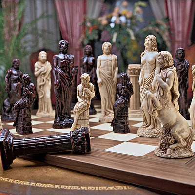 If you're a fan of the game or if you want a special decorative object, this is ideal. Pawns are in the form of ancient gods or warriors or even athletes, all with the characteristic form of Greek statues.
